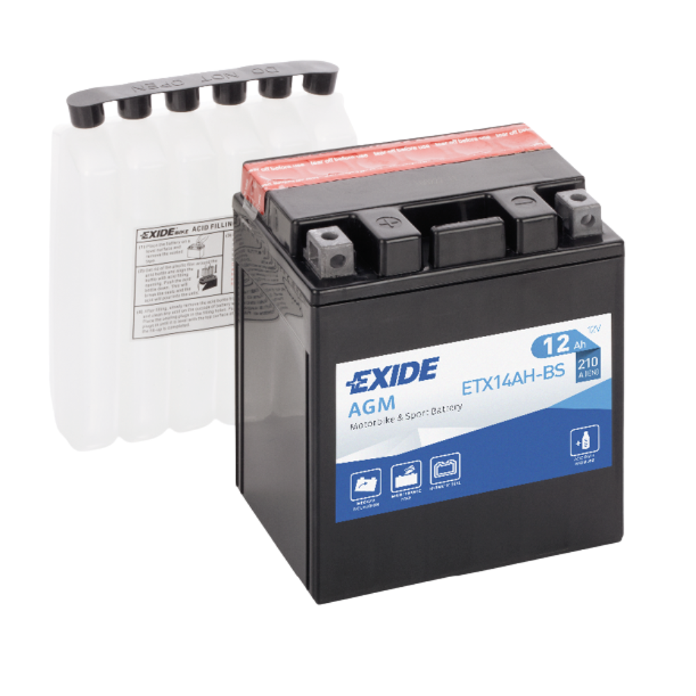 Exide AGM MC ETX14AH-BS to solidny, bezobsługowy akumulator motocyklowy, stworzony z myślą o intensywnej eksploatacji w pojazdach dwukołowych, ATV, skuterach śnieżnych i innych maszynach typu powersport. Dzięki technologii AGM (Absorbent Glass Mat) zapewnia znakomitą wydajność, długą żywotność oraz wysoką odporność na wibracje i przechyły.